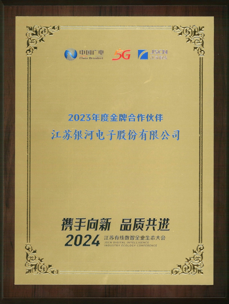 銀河獲評(píng)2023年度江蘇有線金牌合作伙伴